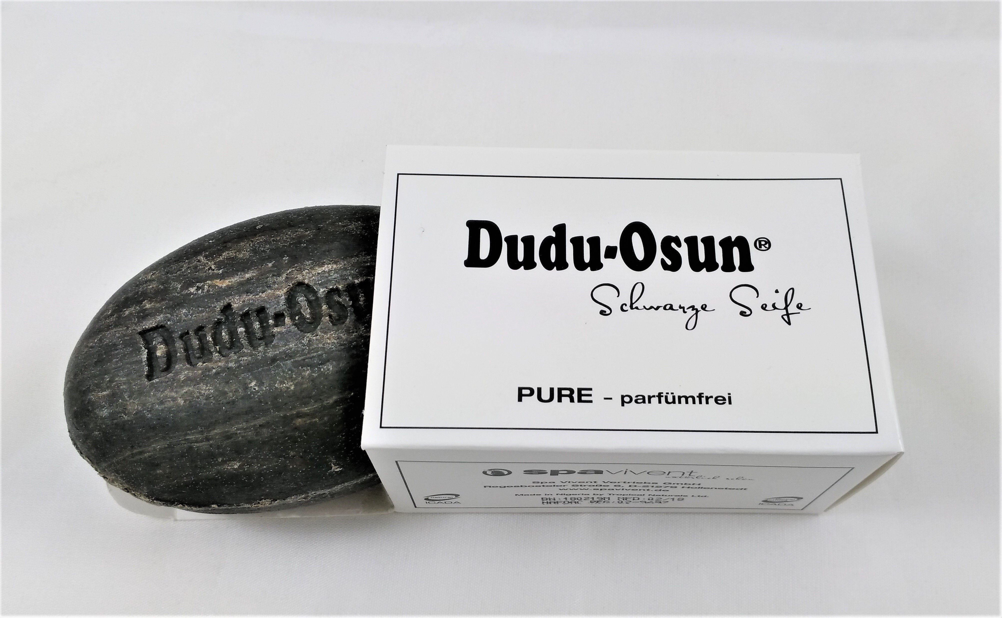Traditionell - von regionalen Kleinbauern in Nigeria - gewonnes Palmkernöl wird mit Asche (aus verbrannten Palmblättern und Kakaoschoten) aufgekocht - mit moderner Technik nach traditioneller Rezeptur. Die weiteren Zutaten werden erst NACH dem Verseifungsprozess hinzugefügt, und bleiben somit in ihrer Qualität erhalten. Die charakteristische Farbe erhält die gepresste Naturseife durch ihren Ascheanteil. Die hochwertige, kaltgepresste Sheabutter, die traditionell aus den Fruchtkernen des als heilig geltenden Sheabaumes (Karitébaum) gewonnen wird, verleiht der Dudu-Osun® die pflegenden und rückfettenden Eigenschaften.