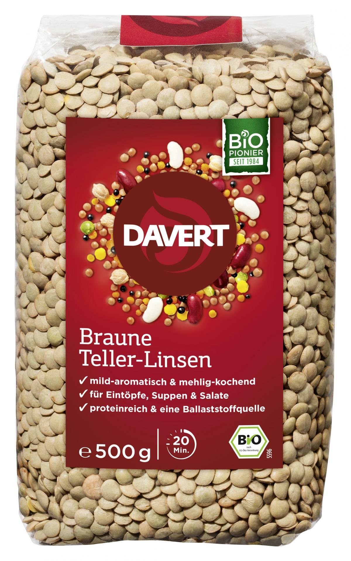 Braune Teller-Linsen kochen sämig weich, sind mild-aromatisch im Geschmack und eignen sich gut für Eintöpfe, Aufläufe und Brotaufstriche.
